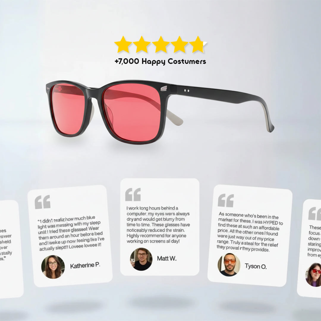 Many customers report falling asleep faster, sleeping deeper, and feeling more rested after switching to our glasses.